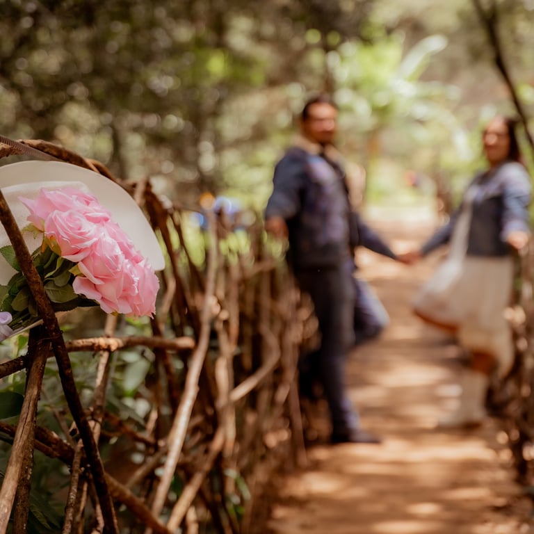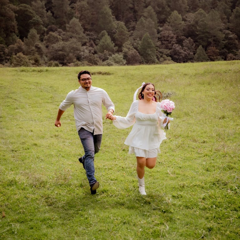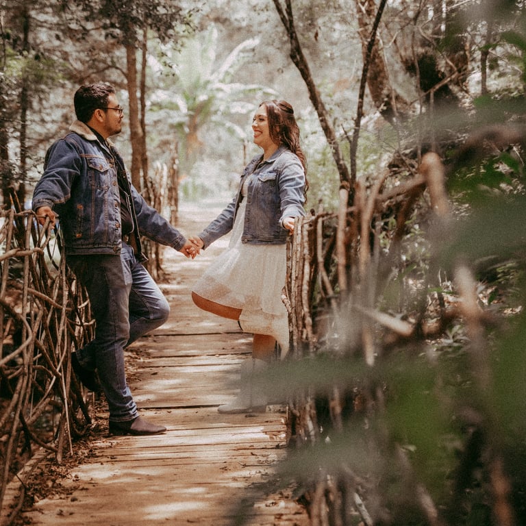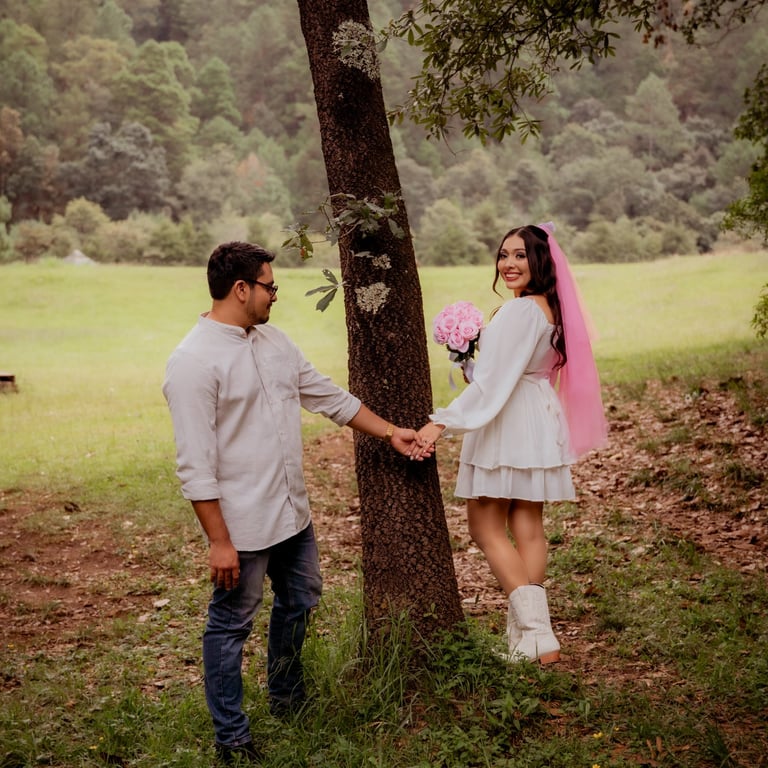 Una serie de eventos y coincidencias nos hizo conocernos en la Ciudad de México, de donde es Emanuel y esto nos permitió formar una amistad a distancia. En tiempos de pandemia cuando el mundo colapsaba surgieron sueños: Luz llegó a la ciudad a estudiar y de una amistad incondicional floreció el amor. Después de un año de noviazgo nos comprometimos y en 6 meses nos casamos por el civil. Quizá apresurado, pero cuando quieres pasar el resto de tu vida con la persona que amas quieres que el resto de tu vida empiece ya. Empezar una nueva vida en otro estado requería esfuerzo, así que hicimos una pequeña ceremonia civil con el firme deseo de que, a su tiempo, el Señor nos permitiera hacer nuestros votos delante de Él y con todas las personas que amamos y que nos aman como testigos.